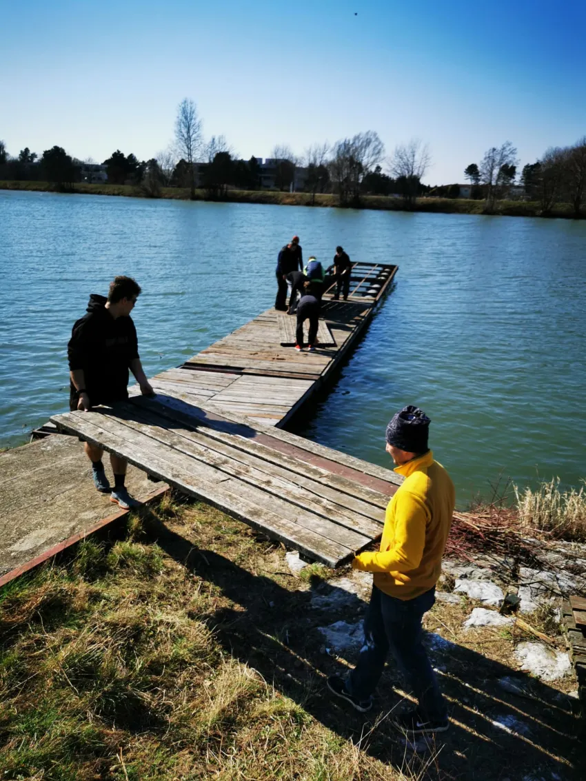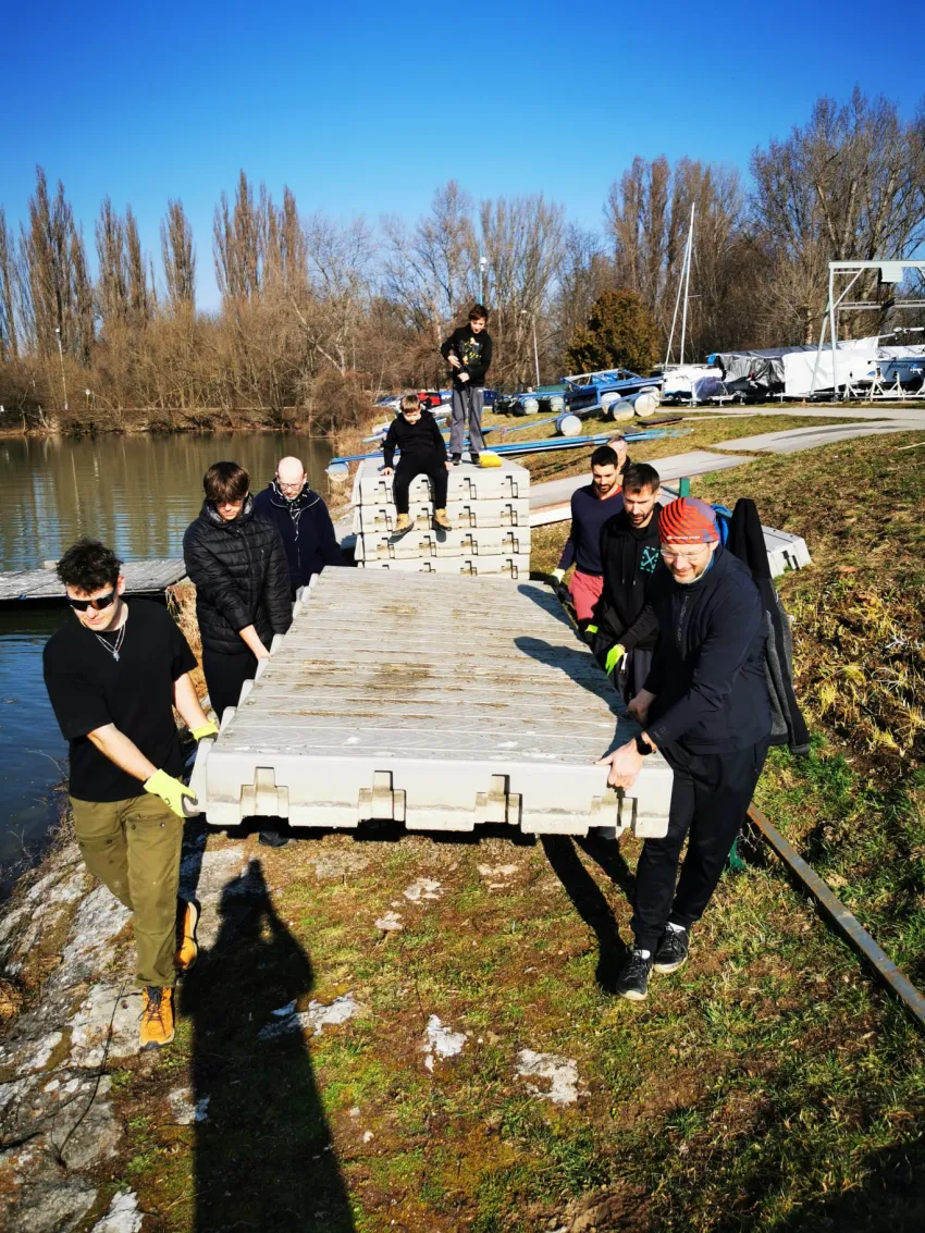 7. marca sme spoločne položili naše šedé veslárske mólo, aby mohli deti začať opäť chodiť na vodu a postupne sa pripravovať na tréningy na Sĺňave. Popritom sme úplne vypratali našu posilňovňu, aby sa počas nasledujúceho týždňa mohla dokončiť jej rekonštrukcia.
